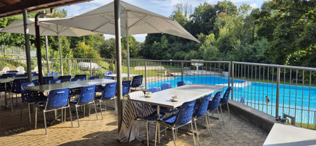 Geniessen Sie die schöne Aussicht auf die Badi-Anlage und lassen Sie sich kulinarisch verwöhnen!